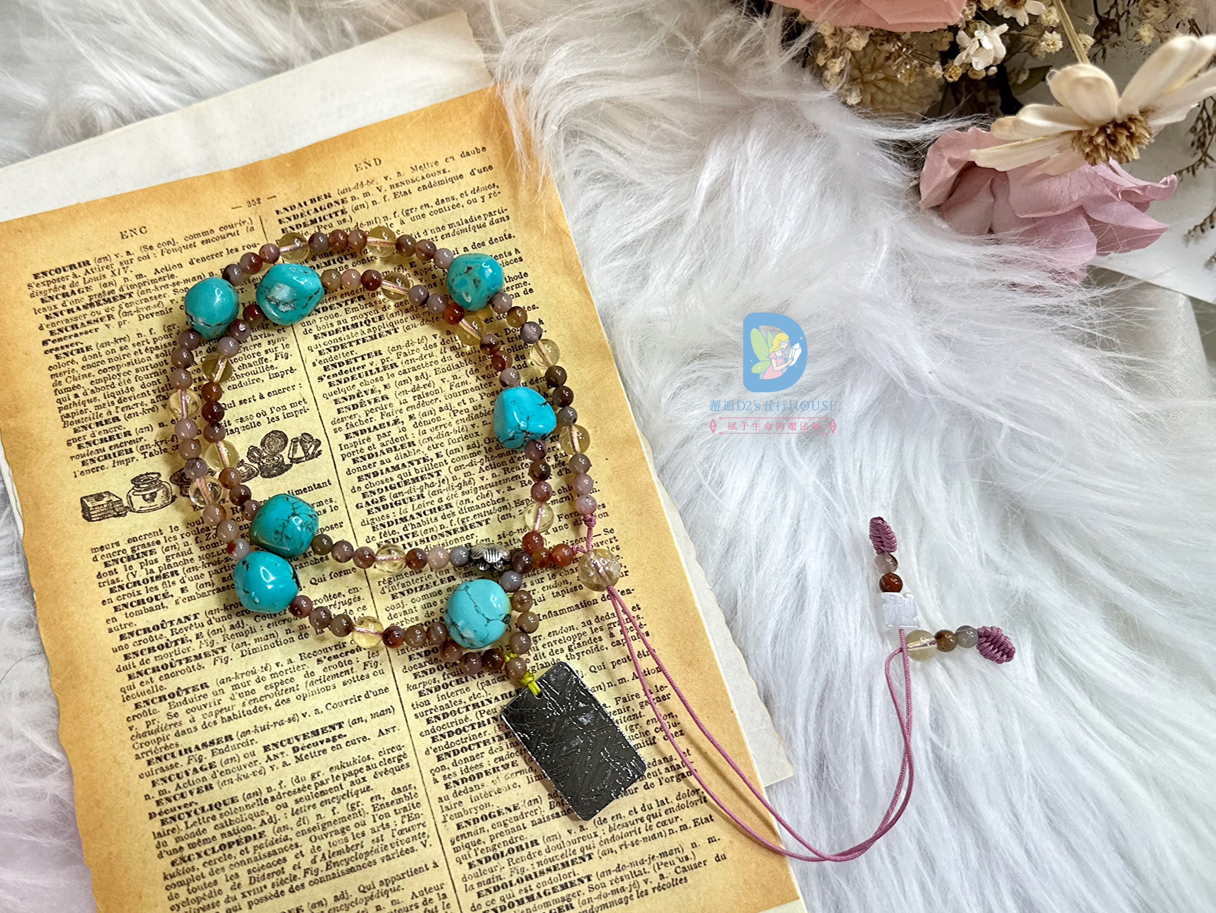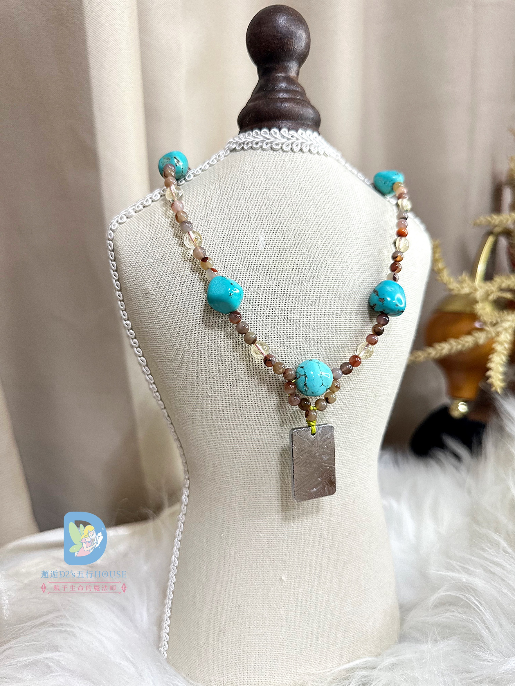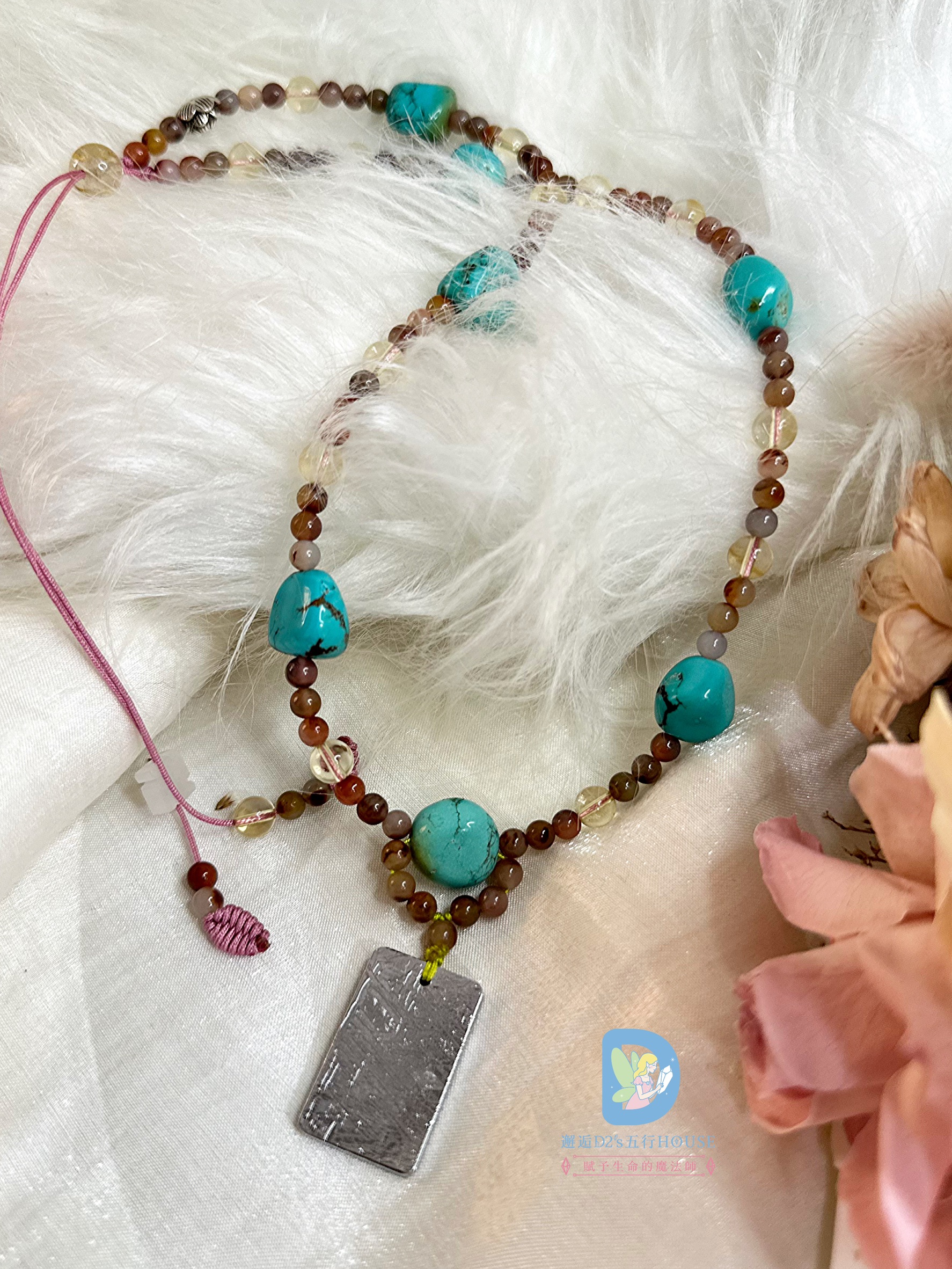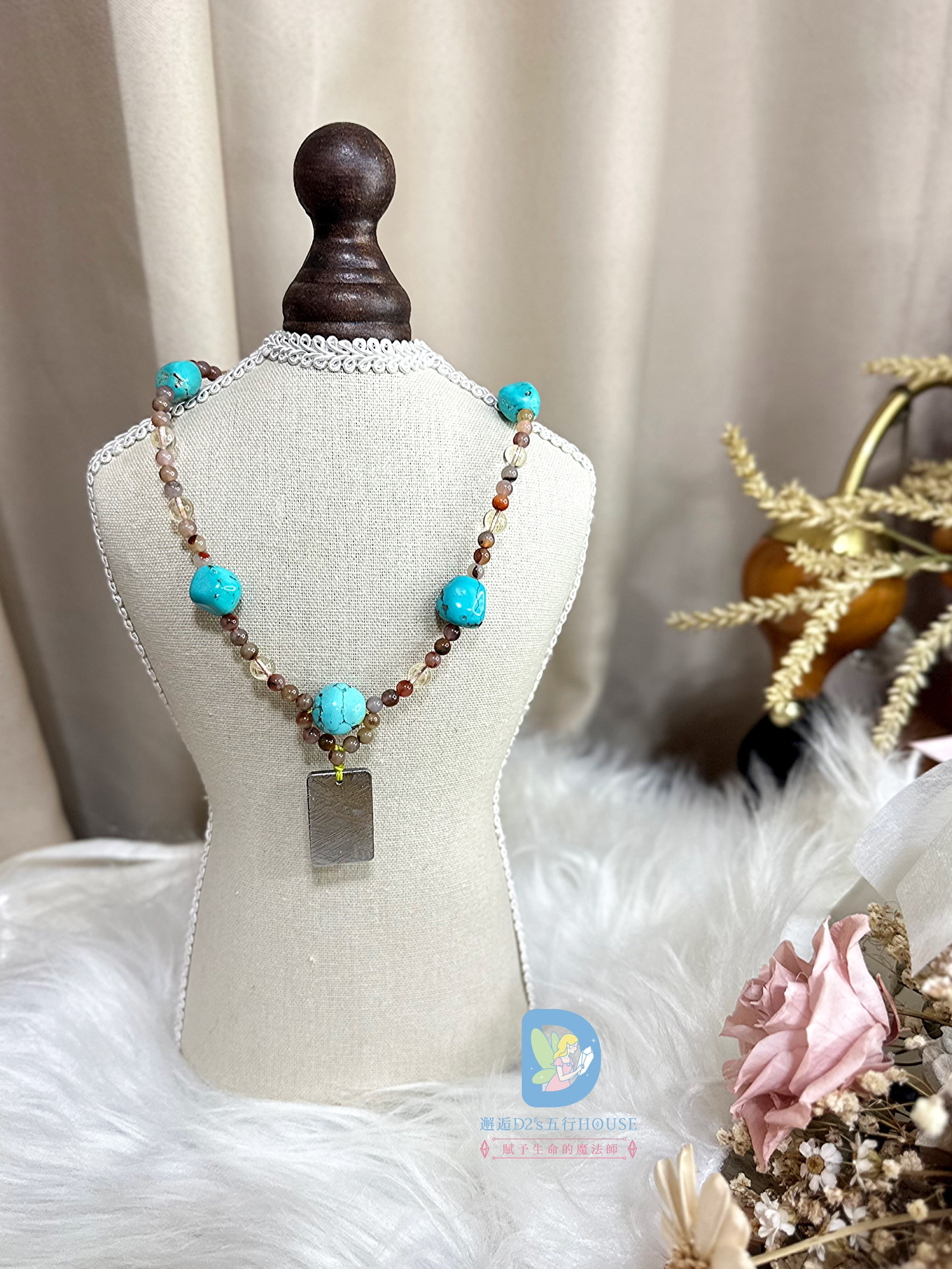 天鐵 × 鹽源瑪瑙 × 黃水晶 × 綠松石水晶項鍊