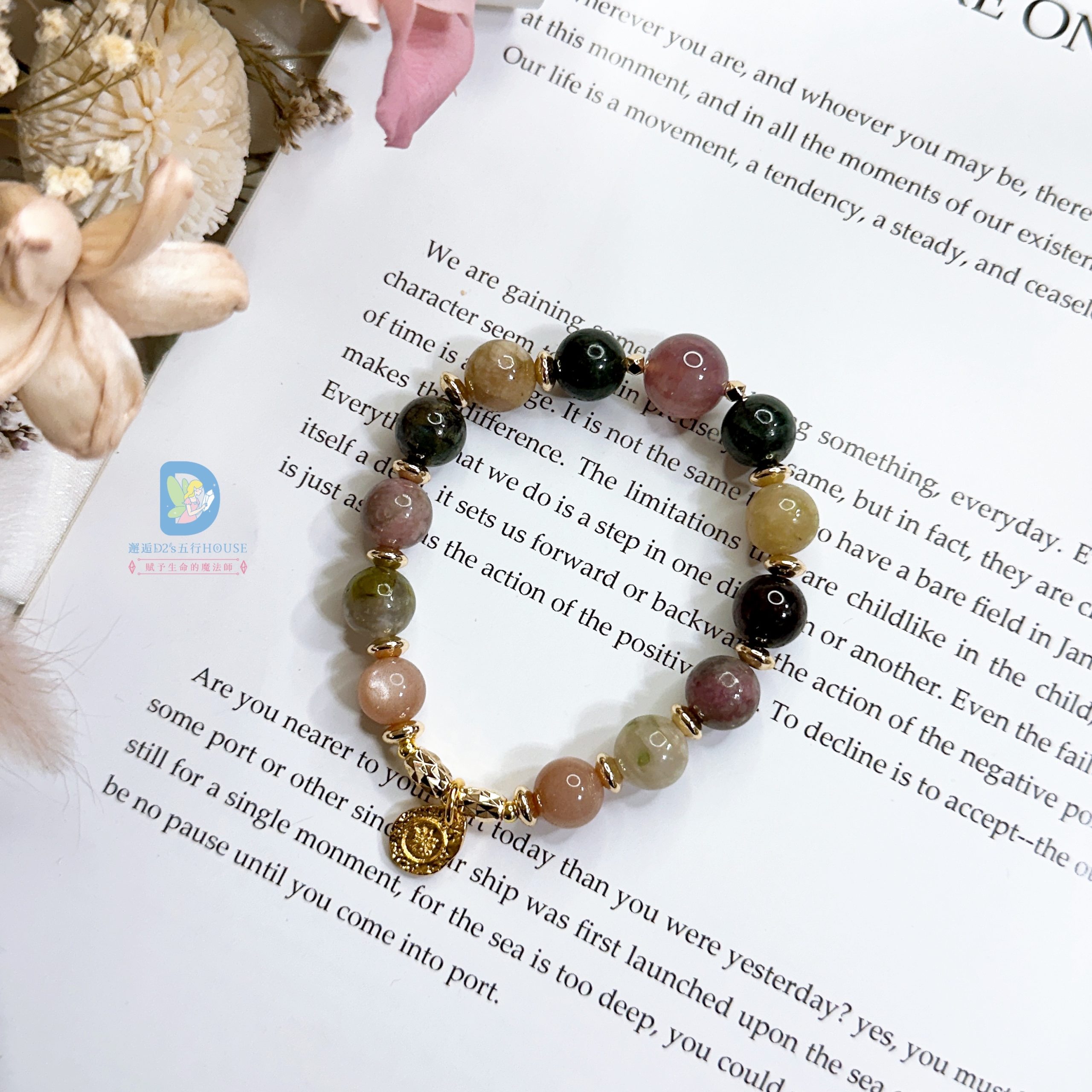 粉碧璽 × 共生碧璽(白+黑+紅+綠)× 橙月光
