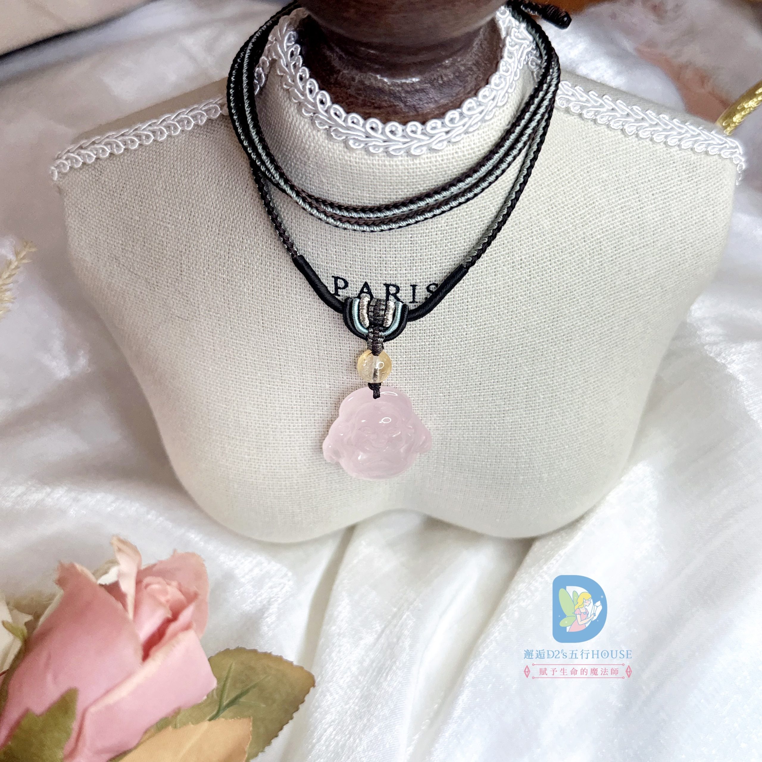 ・主石:粉晶彌勒墜子(寬約 24mm)