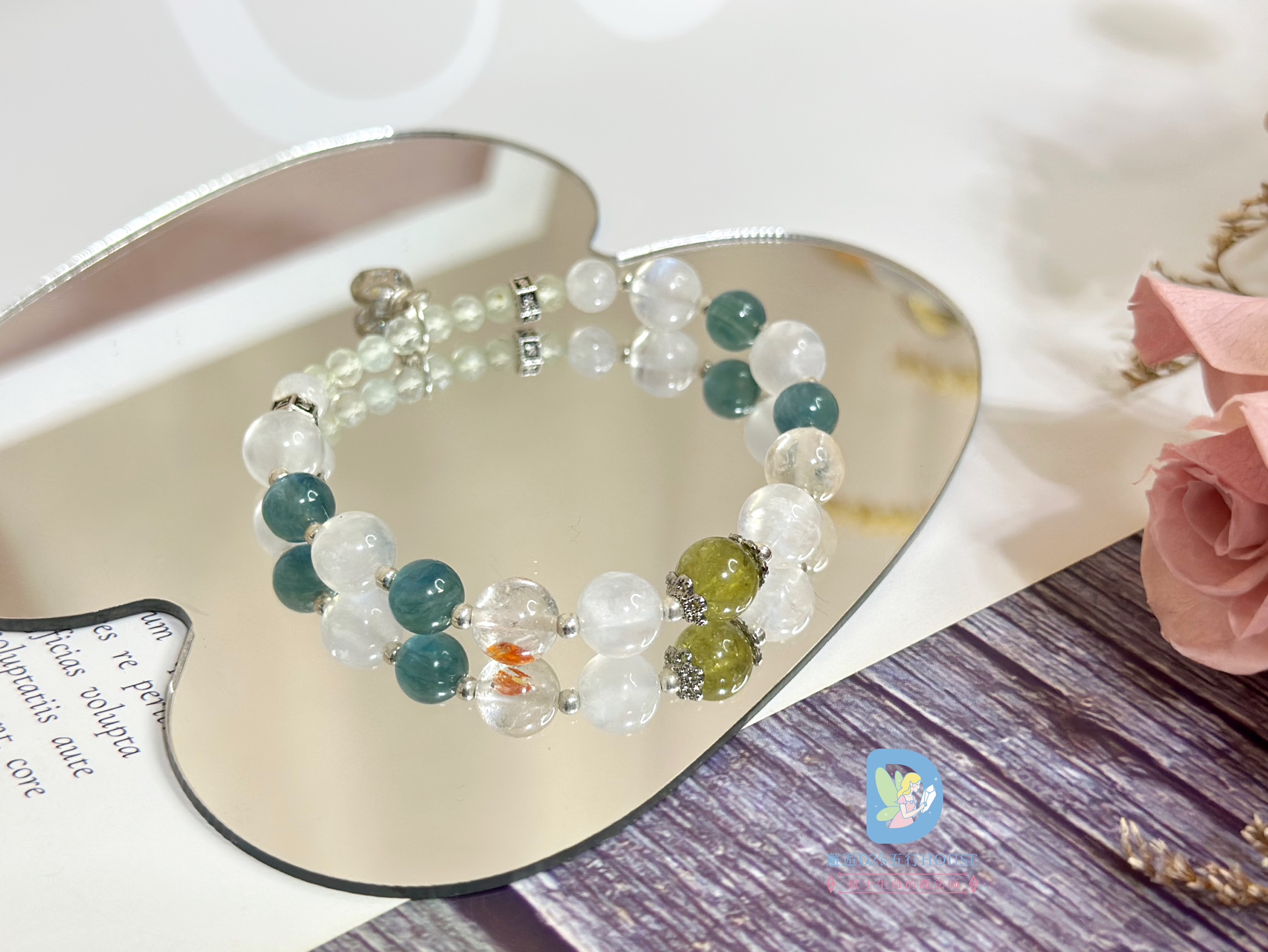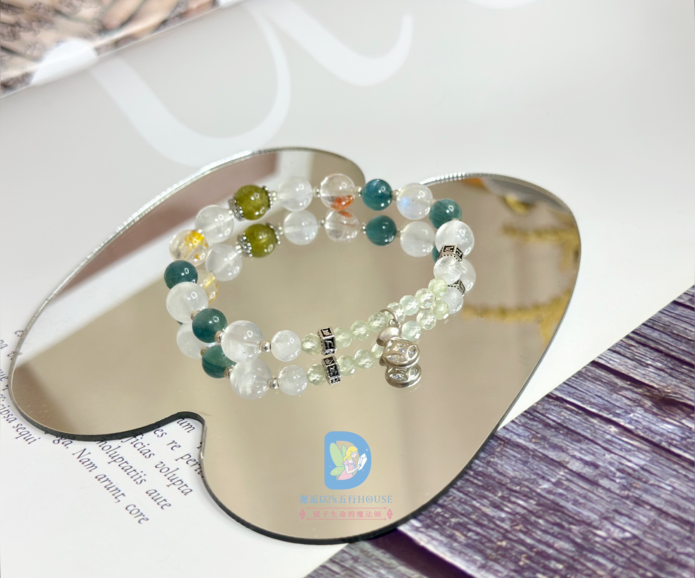 白月光 × 綠晶石 × 紅黃膠花 × 沙佛萊 × 葡萄石