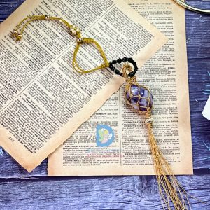 搭配深藍青金石與黑瑪瑙心經雕刻,